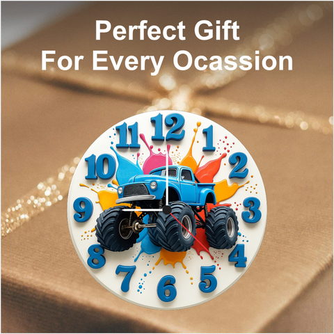 - Make birthdays unforgettable with this bold monster truck clock adding excitement to kids’ rooms & gifting moments