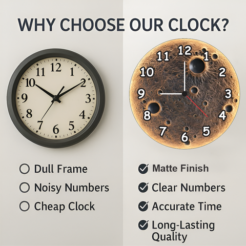 Be the first to review “TERA MERA GIFT | Moon Design Wall Clock 12 Inch | 6mm MDF Matte Finish | Crater Surface Art Wall Clock” Cancel reply