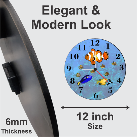 TERA MERA GIFT | Ocean Fish Wall Clock 12 Inch | 6mm MDF Matte Finish | Vibrant Underwater Design for Children’s Bedroom & Playroom