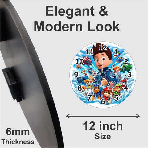 TERA MERA GIFT | Paw Patrol Cartoon Wall Clock 12 Inch | 6mm MDF Matte Finish | Kids Bedroom Wall Clock Decor
