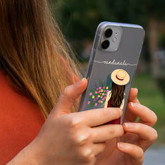 An elegant personalized mobile cover featuring a floral girl illustration and custom name touch. Made with soft transparent silicone, it protects while adding charm to everyday life. Ideal for birthdays, gifting moments and enhancing daily style with aesthetic vibes.