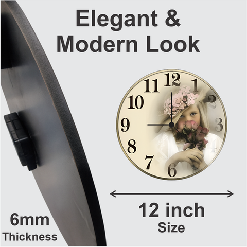 TERA MERA GIFT | Premium MDF Floral Lady Wall Clock 12 Inch | 6mm Thick | Tik-Tik Quartz Movement | Elegant Vintage Home Decor & Gift