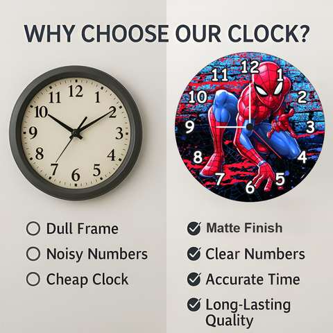 Be the first to review “TERA MERA GIFT | Premium MDF Superhero Wall Clock 12 Inch | 6mm Thick | Tik-Tik Quartz Movement | Kids Room Decorative Gift & Home Decor” Cancel reply