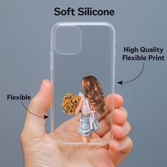 TERA MERA GIFT Romantic Custom Name Transparent Soft Silicone Back Cover with Girl and Flowers Artwork for All Smartphone Brands