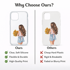 A heartfelt customised romantic phone case made from soft silicone, designed to express love through a personalised name and cute girl illustration. The flexible transparent cover fits all brands and offers reliable protection. A perfect emotional gift for girlfriend or wife on birthdays, anniversaries or special romantic moments.