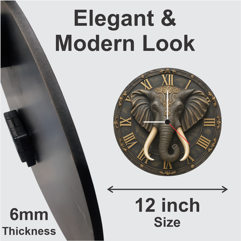 TERA MERA GIFT Royal Elephant Wall Clock 12 Inch Vintage Roman Number Decor Clock for Gifting