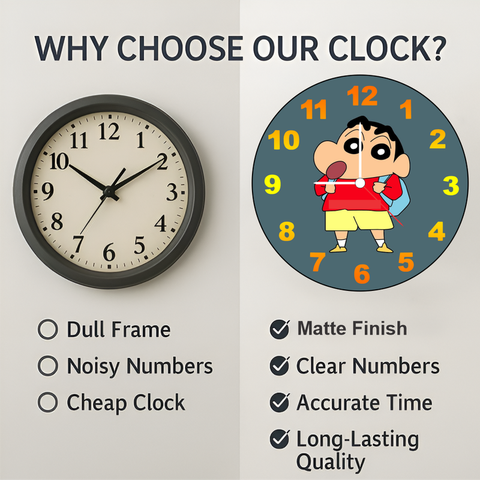 Be the first to review “TERA MERA GIFT | Shinchan Design Wall Clock 12 Inch | 6mm MDF Matte Finish | Funny Cartoon Kids Room Wall Clock” Cancel reply