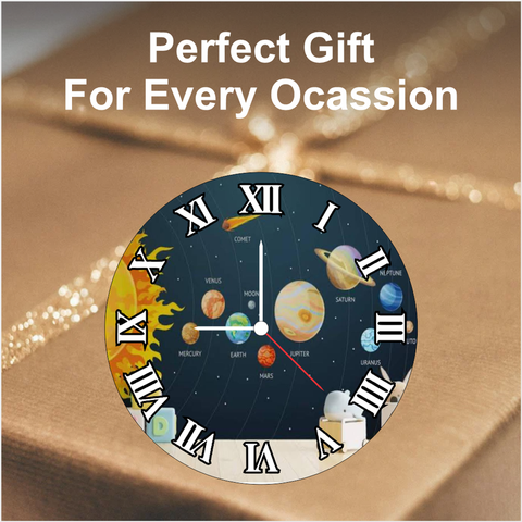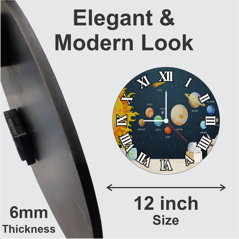 TERA MERA GIFT | Solar System Design Wall Clock 12 Inch | 6mm MDF Matte Finish | Planet Theme Learning Kids Wall Clock