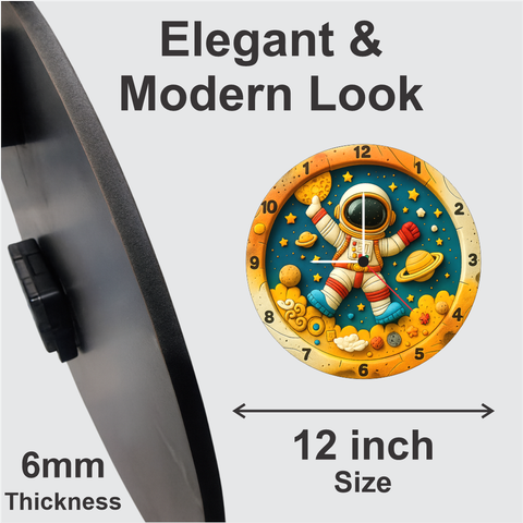 TERA MERA GIFT Space Astronaut Wall Clock 12 Inch – Colorful Galaxy Theme for Kids Room, Play Area & Study Corner | Perfect Birthday Gift
