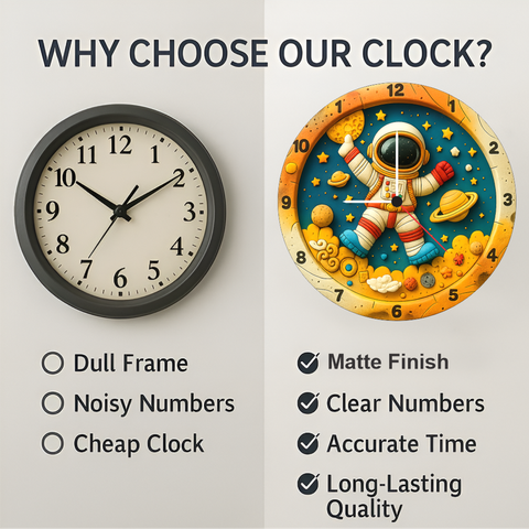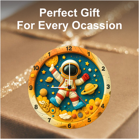 Turn your child’s room into a mini galaxy with this 12‑inch astronaut‑themed wall clock from TERA MERA GIFT. Featuring a cheerful astronaut, planets, stars and vivid colors, it sparks creativity and curiosity. The bold raised numbers make time reading effortless, while the durable 6mm slim board and accurate quartz machine provide long-lasting reliability. A wonderful gifting choice for birthdays, science lovers and young explorers.