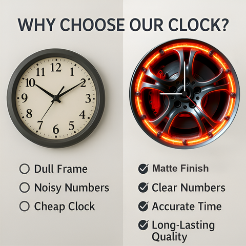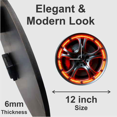 - Premium 12-inch build → glossy rim finish → long-lasting modern décor → perfect for car enthusiasts