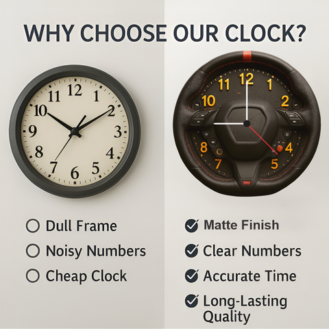 Be the first to review “TERA MERA GIFT Steering Wheel Wall Clock 12 Inch | Car-Themed Decorative Clock for Boys Room & Auto Lovers | Perfect Gift for Birthdays” Cancel reply