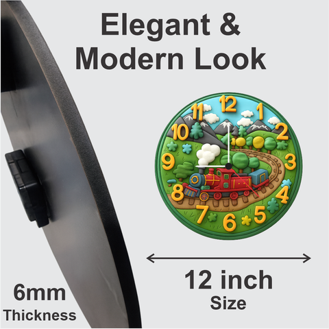 TERA MERA GIFT Train Theme Kids Wall Clock 12 Inch | Cute Cartoon Engine Clock for Boys & Girls | Perfect Gift for Kids Room & Birthday