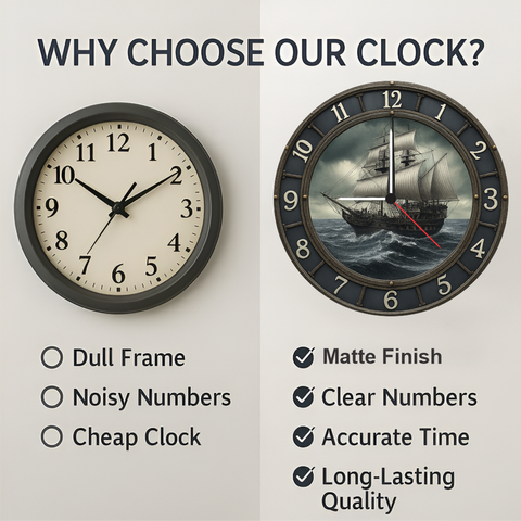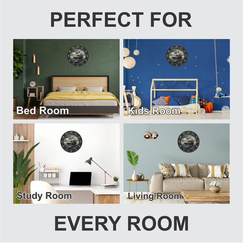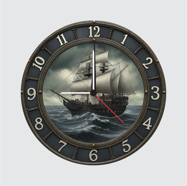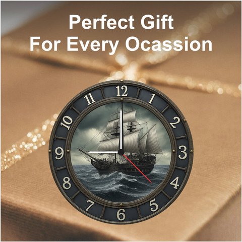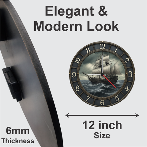 Enhance your space with this stunning vintage ship wall clock featuring bold nautical artwork that brings ocean adventure to your home. The silent quartz movement ensures accurate time without disturbing your sleep or workflow. Large easy-to-read numbers and a durable 6mm frame make it ideal for living rooms, offices, study areas, and gifting on special occasions. A perfect blend of style and reliability.